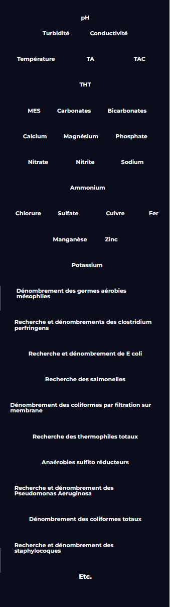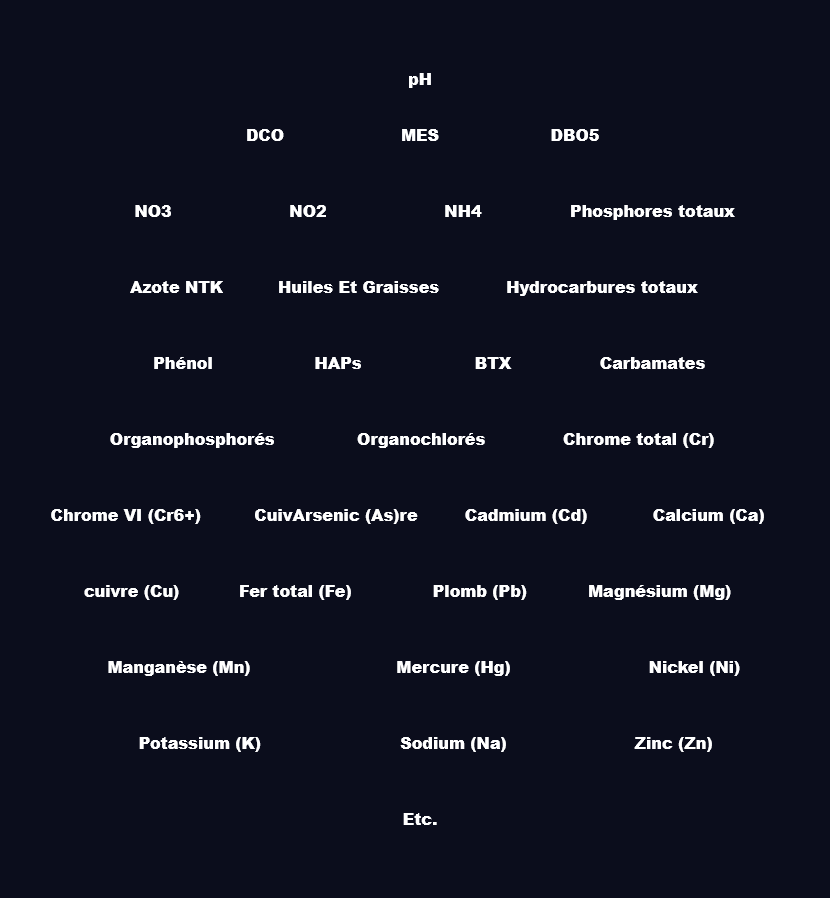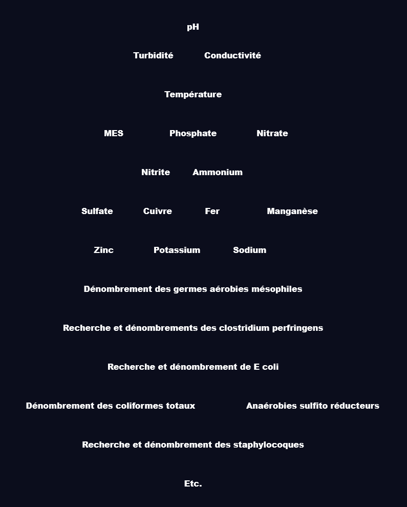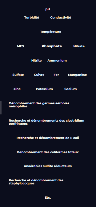 Eaux souterraines, de surface (lagunes, rivières, fleuves) ou des rejets industriels… Envitech- Lab procède aux analyses physico-chimiques, chimiques et bactériologiques.